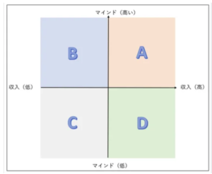 そこで今日は、収入と心の向きで人を4つのタイプに分けて考えてみます。